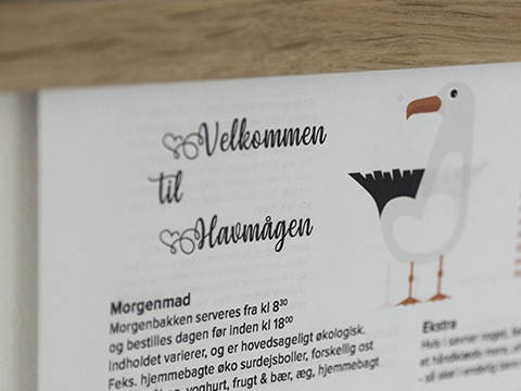 B&B haven er indrettet med bænke og sofa.