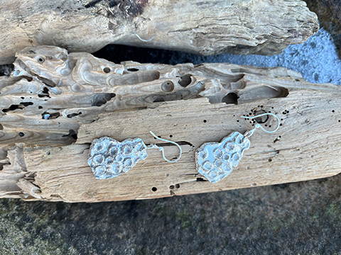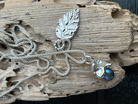 Jeg kan lide at lave anderledes, og lidt rustikke smykker - nogle med sten, som jeg har fundet på mine rejser rundt i verden, andre sølvafstøbninger af fosiler, muslingskaller eller for eksempel afstøbning i tandstikker, bønner eller andre ting. Jeg arbejder primært i sølv.