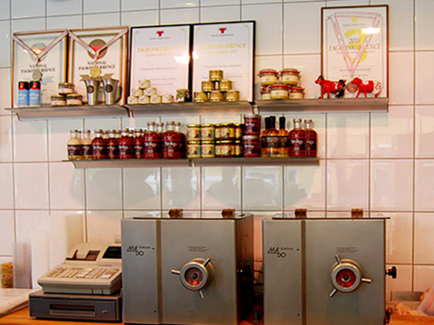 Vi tilbyder et stort udvalg af køkkenklare retter, nemme frokostretter, spændende salater, pølser fra eget pølsemageri samt et bredt udvalg af kødprodukter som kan tilfredsstille enhver sjæl. Derudover har vi et pænt udvalg af italienske vine og specialiteter. Også mad ud af huset - se menuer på vores hjemmeside.